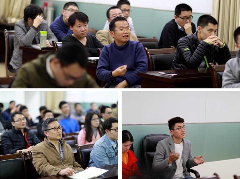 报告后, 汪老师就老师和同学们提出的能带量子模拟中的参数化、 超导量子线路中测量能谱、角分辨光电子能谱测量能谱对现象与拓扑性质的关系等问题做了耐心的解答,并对量子模拟的意义和凝聚态理论各方向的发展和挑战做了一定的阐述。